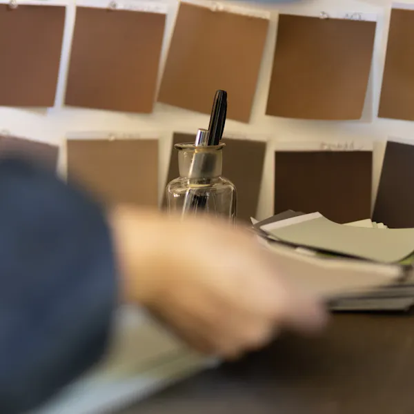 - Pinning swatches to surfaces and seeing how they respond in different lighting